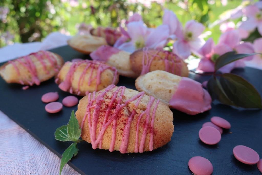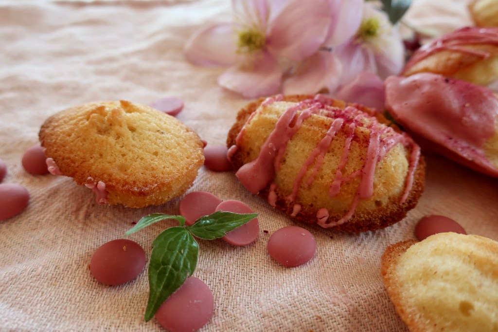 Mehr als 2 Jahrhunderte später begeistern die kleinen Madeleines immer noch. Außen leicht knusprig und innen saftig und zart. Es gibt sie in allen möglichen Variationen, hier ist das klassische Rezept mit etwas Ruby-Schokolade als besonderen Hingucker.