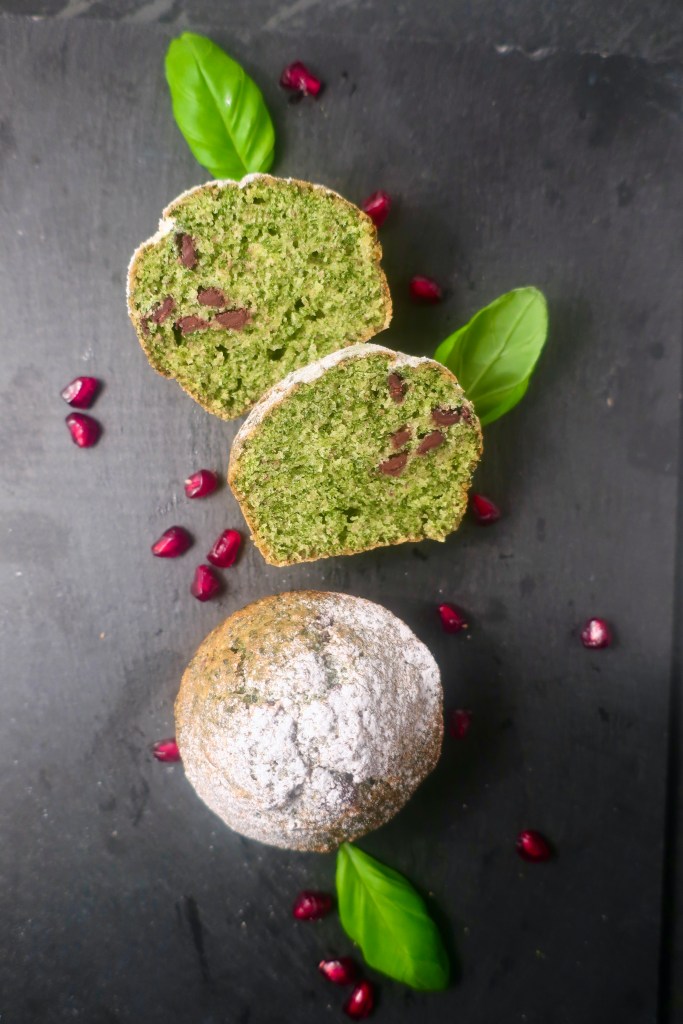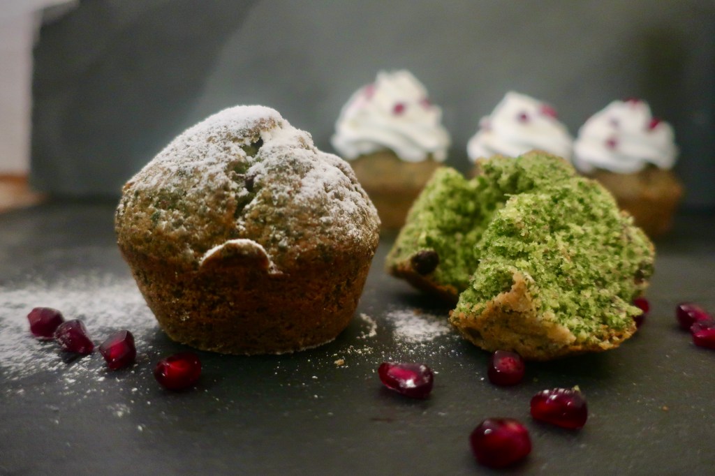 Diese kleinen Kuchen gehören zu meinen Lieblingen! Auf den ersten Blick sehen sie aus wie die üblichen Muffins, hellbraun gebacken mit einem zarten Vanilleduft. Sobald man aber hinein beißt wird man von der kräftigen grünen Farbe überrascht. Eigengeschmack hat der verwendete Spinat nicht, aber er macht das Gebäck saftig und gibt ihm die ungewöhnliche Farbe. Kombinieren kann man das Ganze mit einem Spritzer Schlagsahne und mit frischen Granatapfel Kernen erhält man einen echten Blickfang. Kinder lieben den Geschmack und die kräftigen Farben. Perfekt wenn man bedenkt, dass alles ohne einen einzigen Tropfen Chemie funktioniert.